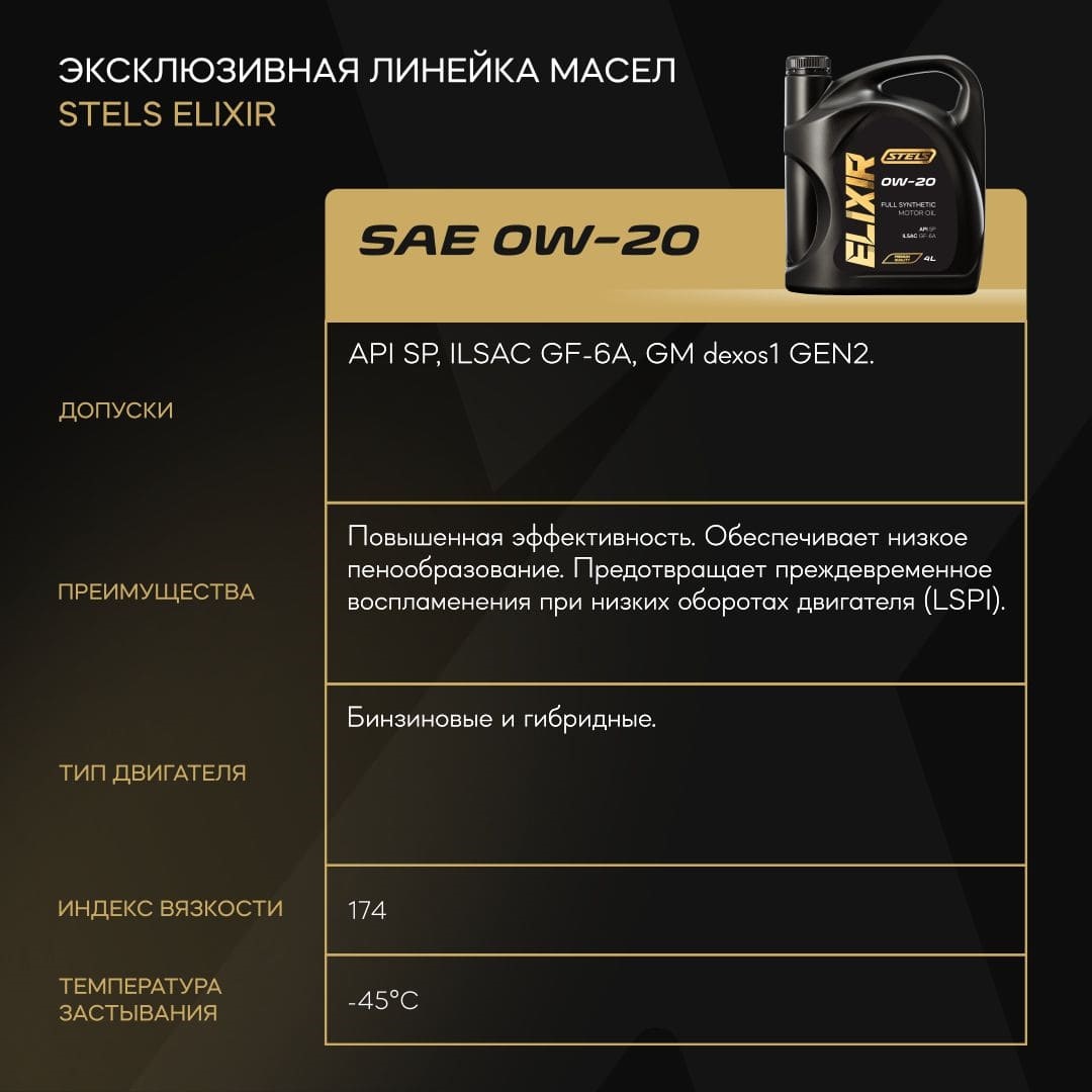 Масло моторное STELS Elixir SAE 0W20 4л в Казани
