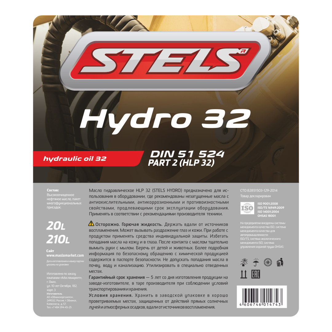 Масло гидравлическое STELS HLP 32 210л в Краснодаре