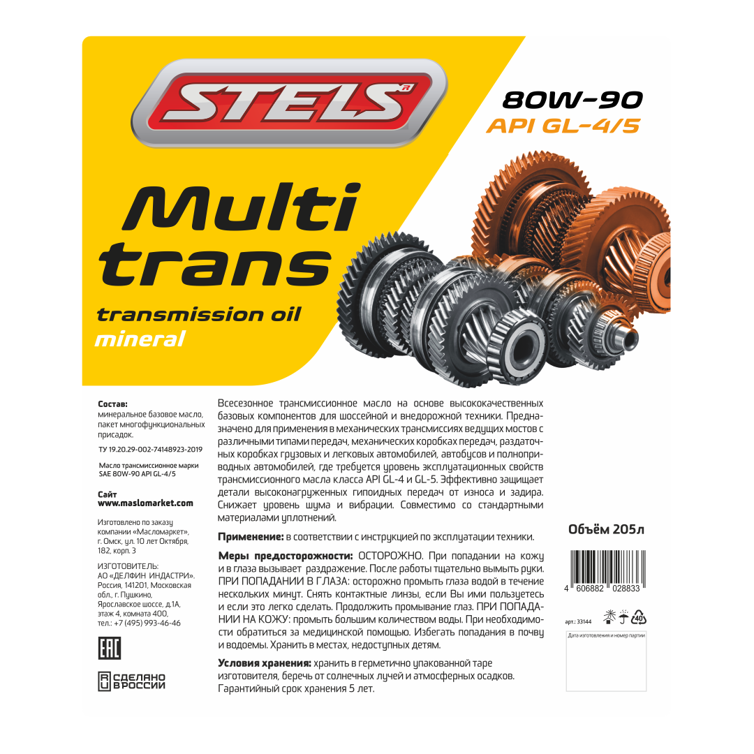 Масло трансмиссионное STELS Multitrans 80w-90 GL-4/5 1л розлив из бочки 33144R в Краснодаре
