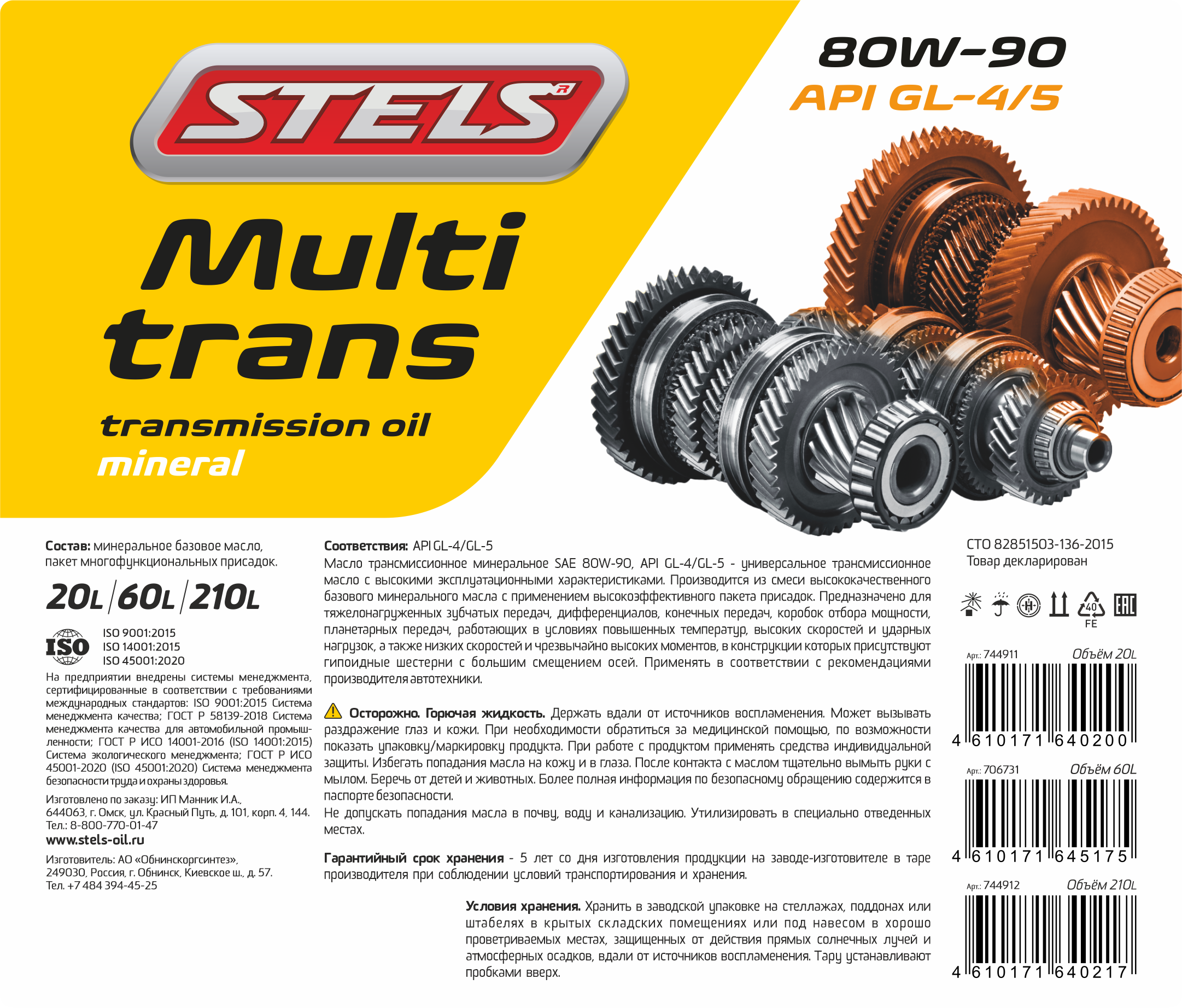 Масло трансмиссионное STELS Multitrans 80w-90 GL-4/5 60л в Новочеркасске
