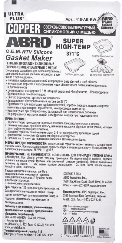 Герметик прокладка медь ABRO 85г 418ABR в Ростове-на-Дону