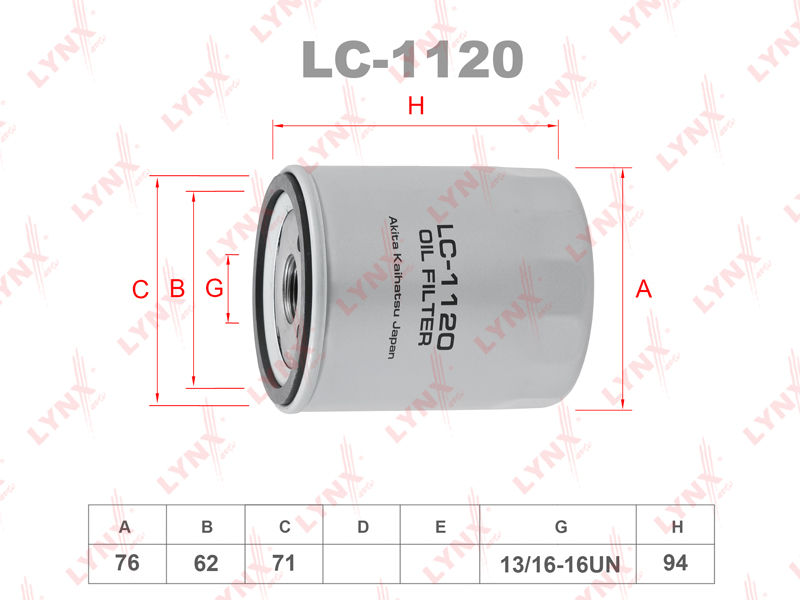 LYNXauto Фильтр масляный LC1120 в Рязани