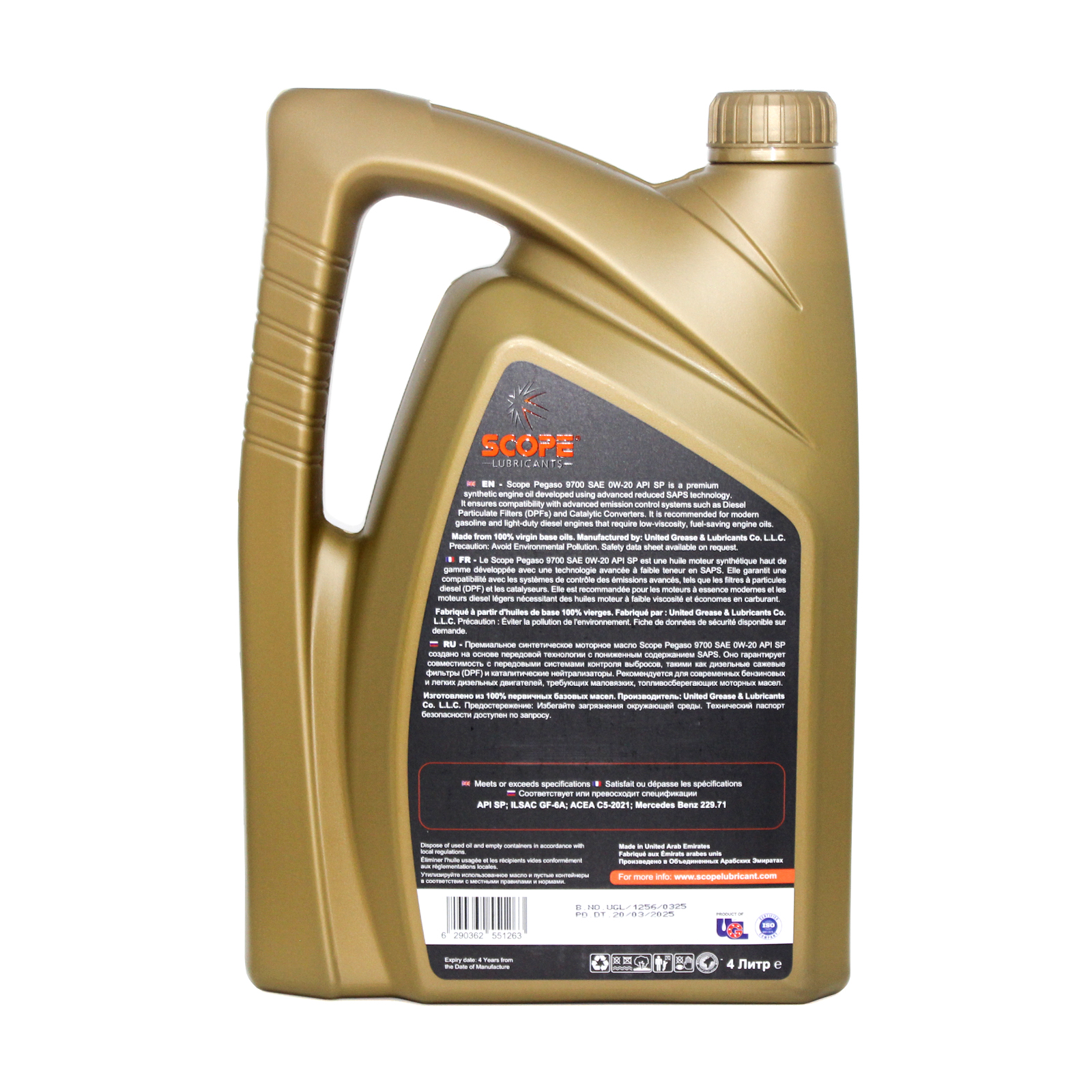 Масло моторное SCOPE Pegaso 9700 FS GEO SAE 0W20 C5 4л в Рязани
