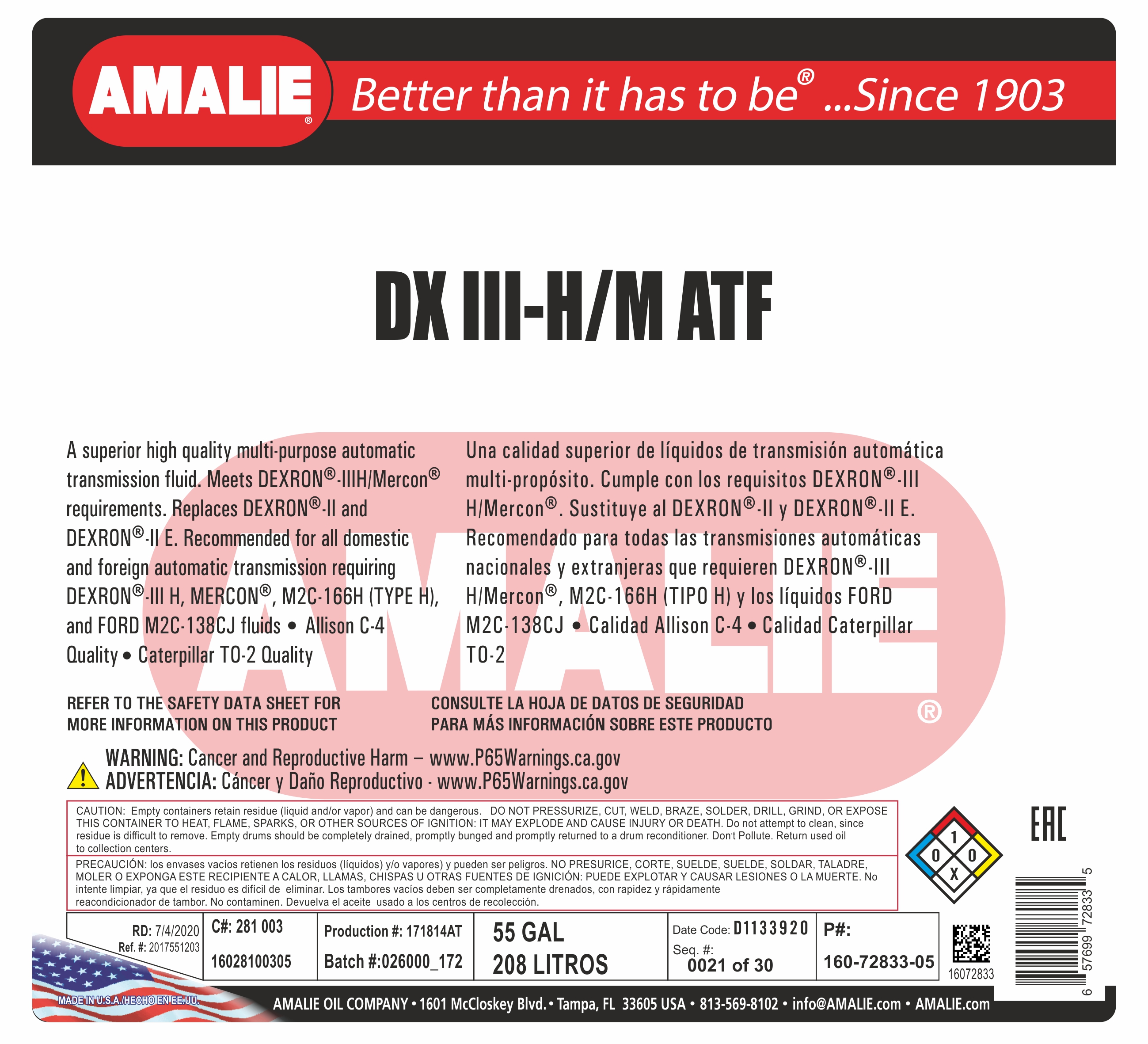 Масло трансмиссионное AMALIE ATF DEXRON III-H\M 1л розлив из бочки в Рязани