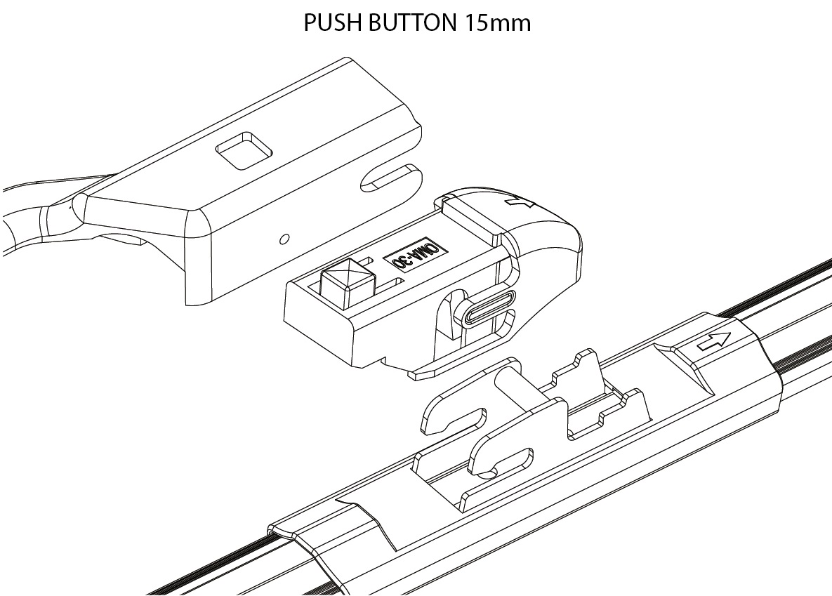 Адаптер для щёток стеклоочистителя OSAWA. Тип крепления - PUSH BUTTON 15mm.