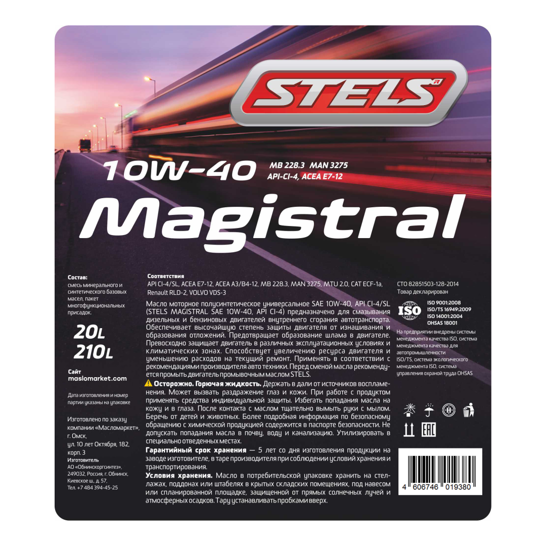 Масло моторное STELS Magistral 10W40 20л в Санкт-Петербурге