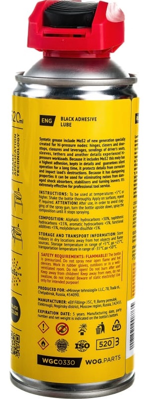 Смазка проникающая адгезионная с дисульфидом молибдена WOG WGC0330 аэрозоль 520мл в Тольятти