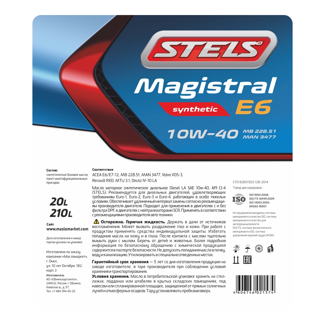 Масло моторное STELS Magistral E6 10w40 1л розлив из канистры в Тюмени