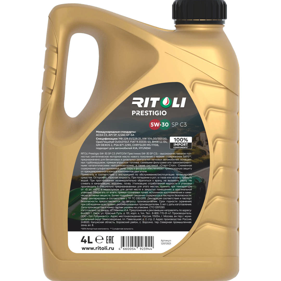 Масло моторное RITOLI Prestigio 5W30 SP С3 4л в Воронеже